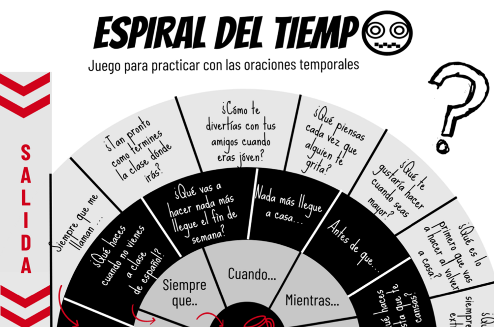 Se necesitan unos dados y peones. Se tira el dado y se responde a las preguntas o se crean preguntas usando oraciones temporales para usar el indicativo o el subjuntivo según sea necesario. Apto para adolescentes o adultos.